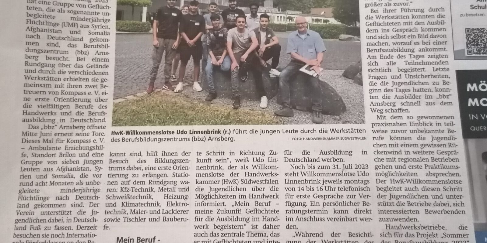 Besuch BBZ Arnsberg – Artikel Sauerlandkurier vom 29.07.23